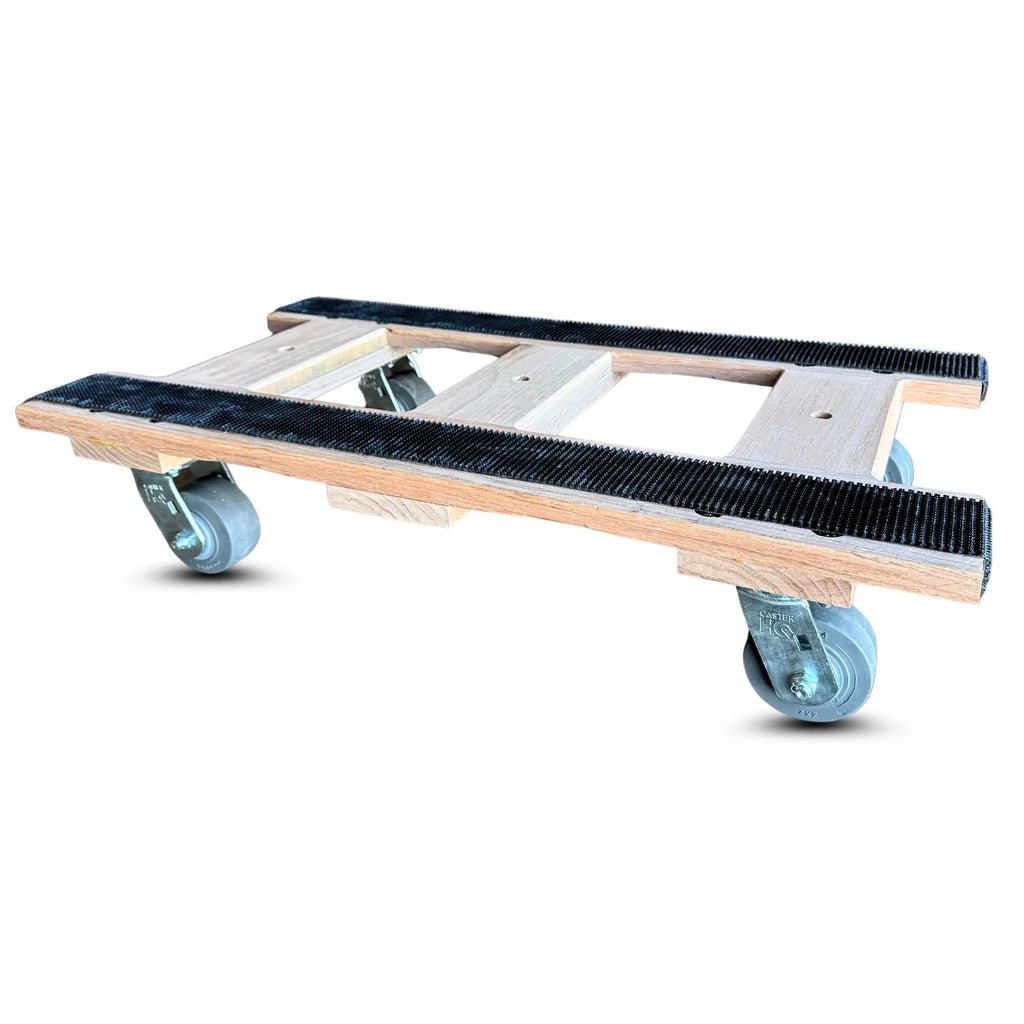 This dolly is perfect for safely moving heavy appliances, rooftop HVAC installations, and other demanding tasks. Its shock-absorbing rubber wheels ensure a smooth ride, while its kiln-dried oak frame provides exceptional durability. Manufactured in Mansfield, Texas, this dolly sets the standard for quality and performance in the industry.
